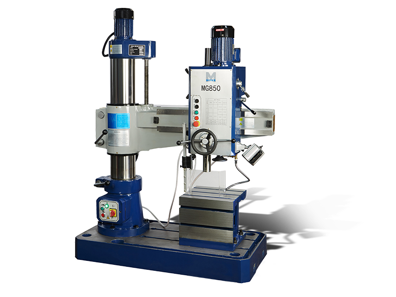 The Meyer range of radial arm drills are high precision machines and are of extremely heavy duty construction. The range covers models from 820mm arm capacity up to 2500mm arm capacity with a comprehensive list of standard features including, on the larger models, hydraulic action for clamping of the arm to the column, the head to the arm and selection of gears. All models meet safety standards with DC injection brakes with aerial stops, providing an instant stop, fitted as standard across the range.