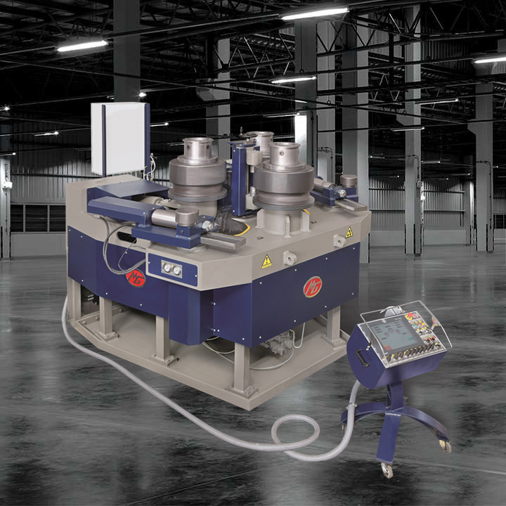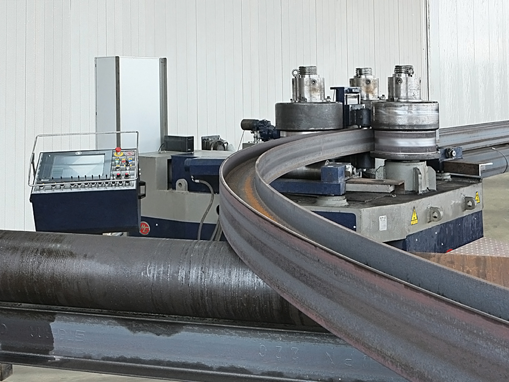 The MG AR Line section rolls are available in a huge range of capacities from 60mm shaft diameter up to an enormous 540mm shaft diameter; this model AR530 weighs in at an incredible 297 tonnes and has the capacity to roll beams of up to 1000mm. These superb quality Italian built machines are of a double pre-bending design and feature three rolls individually driven by powerful hydraulic motors via planetary gearboxes. The universal rolls supplied can roll a whole spectrum of standard sections and profiles, while special tooling is available for tubes or specific profiles. A wide range of optional equipment is offered including special attachments for the rolling of spirals and a very user friendly touch screen NC control.